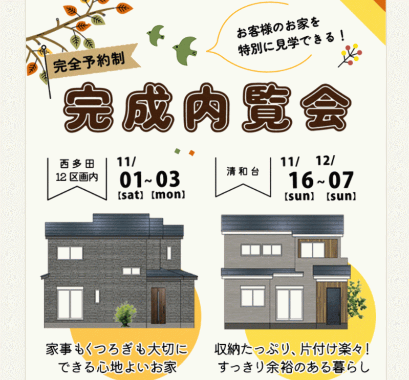 本日は、秋の心地よい季節にぴったりな「完成内覧会」のお知らせです