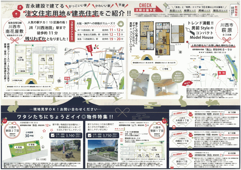 そこで少し早いですが、ご関心のあるお客様だけに「優先案内会」を実施し、各物件の情報やマイホーム検討中だと気になる川西市の土地・建物価格高騰などの「住宅事情」もお話させて頂きます。この機会に是非、ご参加ください。