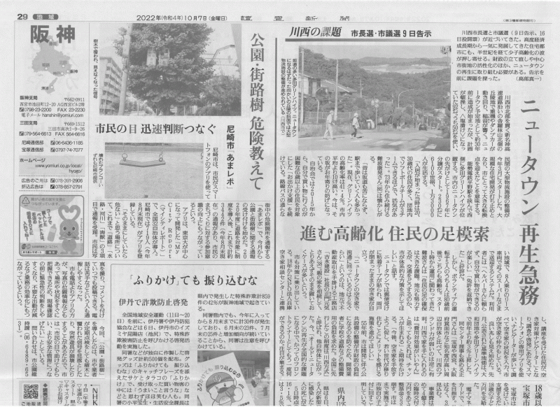 川西市のニュータウンの再生などについて弊社代表の正門のコメントが