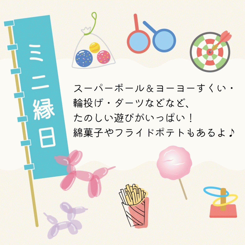 ・ミニ縁日 (ヨーヨーすくい、輪投げ、ダーツ、フライドポテト、綿菓子など)