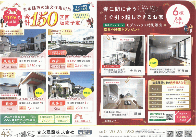 吉永建設では、2026年以降 合計150区画の分譲地を販売予定です。