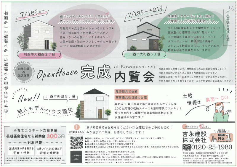 〇7月は3棟 完成内覧会のお知らせ