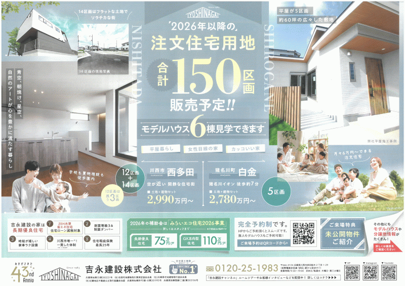 吉永建設では、2026年以降 合計150区画の分譲地を販売予定です。
